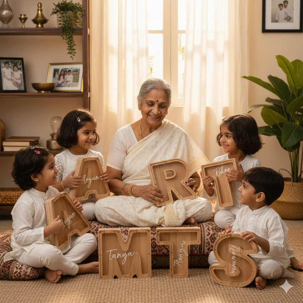 A handcrafted alphabet bank made from real wood, designed to be your child’s first money memory. Engraved with their name, shaped like their initial — and loved by thousands of parents across India.